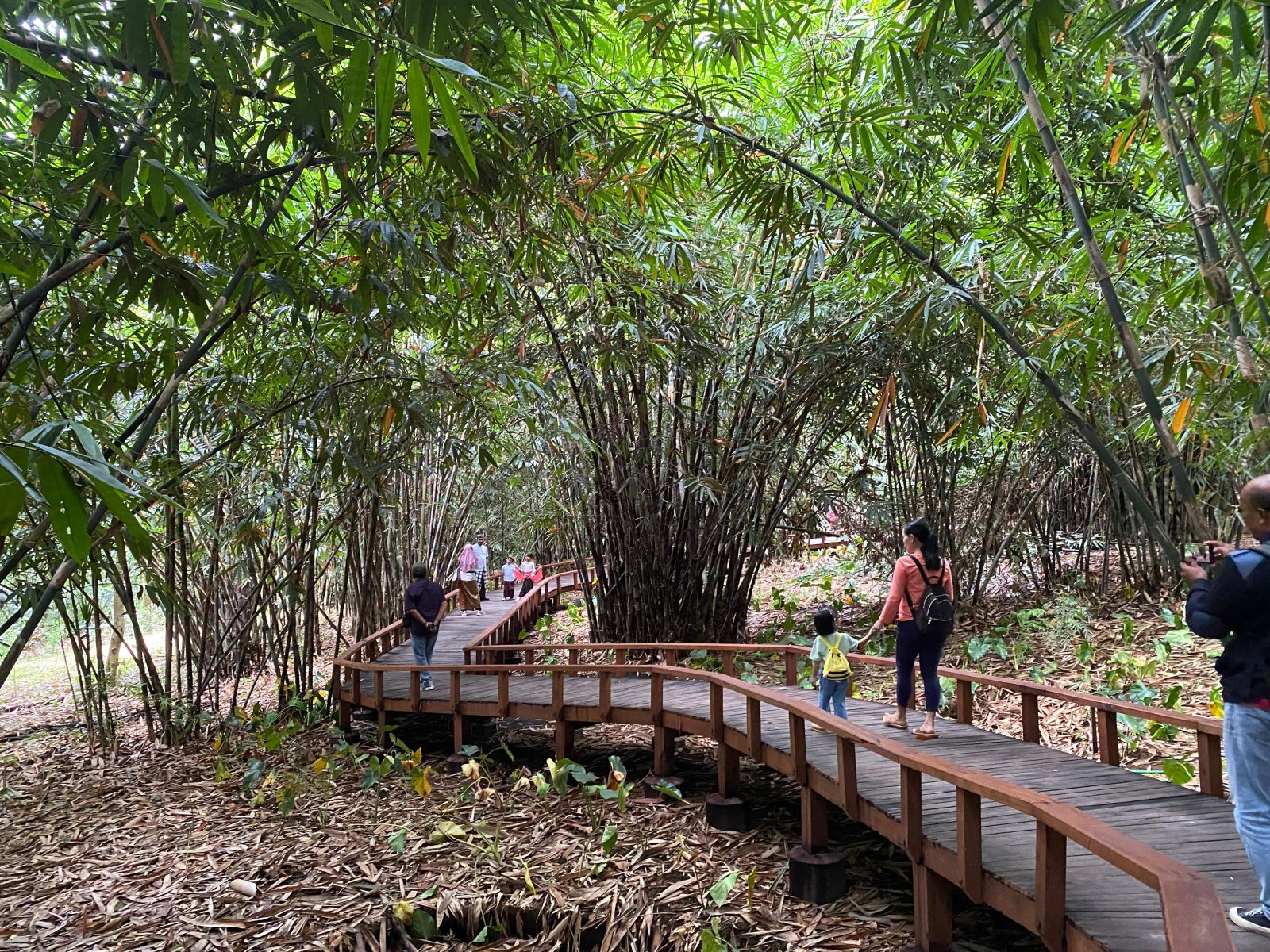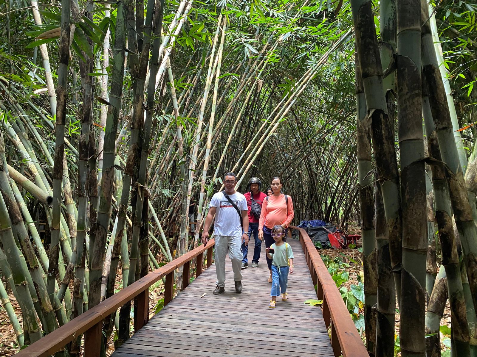Dari gambar-gambar yang terekam, tampak wisatawan menikmati jalur jembatan sambil berpose di bawah rindangnya pepohonan bambu, menciptakan suasana asri yang cocok untuk konten media sosial.